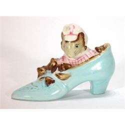 Hand painted Beswick Beatrix Potter 'Old Woman Who Lived in the Shoe' brown backstamp, 9cm in length