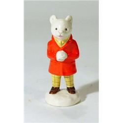 Hand painted Beswick Rupert snowballing, marks to base, 12cm high