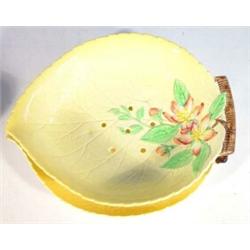 Hand painted Carltonware yellow 'Apple Blossom' strainer and stand, marks to base, 25cm in length…