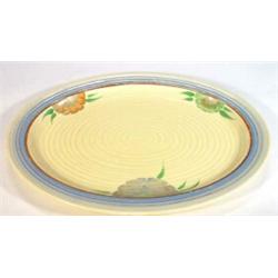 Hand painted Clarice Cliff 'Rhodanthe' patterned meat plate, 36cm in length