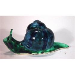 Hand painted David Sharp Rye Pottery snail, painted marks to base, 23cm long