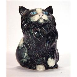 Hand painted David Sharp Rye pottery seated black kitten, painted marks to base, 14cm high