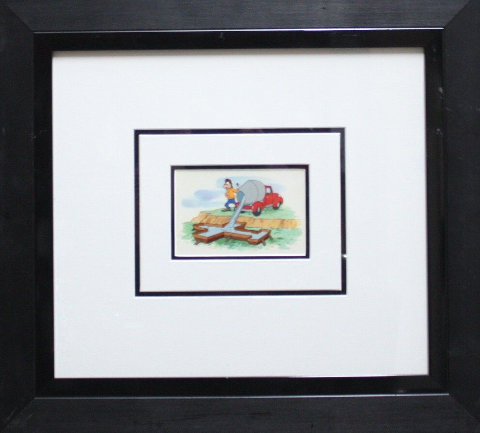 Hand painted Disney animation production cell.   Goofy Sandmixer  . 4  x6  . Framed 22  x24