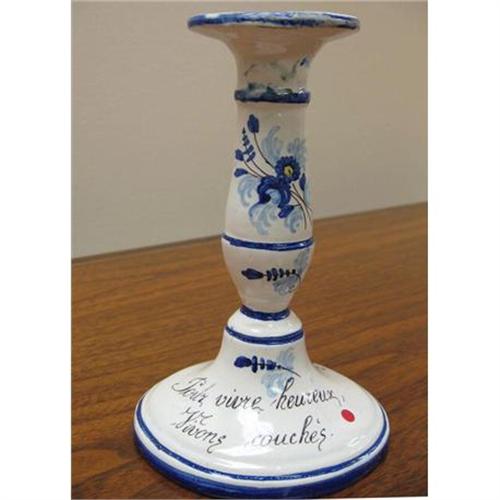<tr><td>Title:Hand painted French candlestick</td></tr>