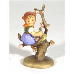 Hand painted Goebels girl in a tree, marks to base, 11cm high