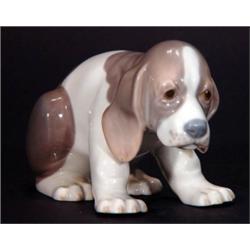 Hand painted Llado seated dog, printed and impressed marks to base, 14cm in length