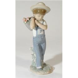 Hand painted Lladro figure of a boy with a basket of flowers on his back, impressed marks to base, 27cm high