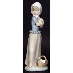 Hand painted Nao figurine clutching a puppy, marks to base, 20cm high