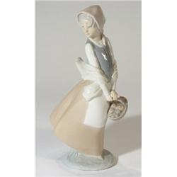 Hand painted Nao figurine of a girl with a basket, marks to base, 24cm high