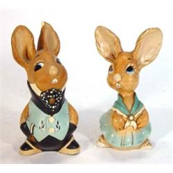 Hand painted PenDelphin mother and father rabbits, paper labels to base, 19cm high…