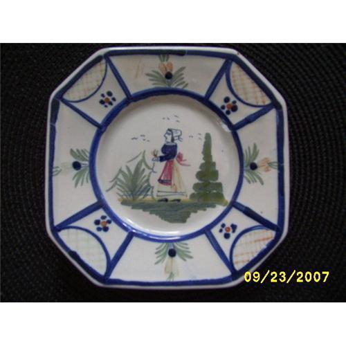 <tr><td><font size="2" face="Arial, Helvetica, sans-serif"><strong><font color="#000033">Title:</font></strong>Hand painted "Quimper" ware Octagonal lady</font></td></tr>
