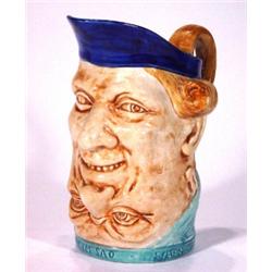 Hand painted Sarreguemines double headed character jug 'When I'm Empty, I'm Sad ... When I'm Full, I'm Happy', 23cm high