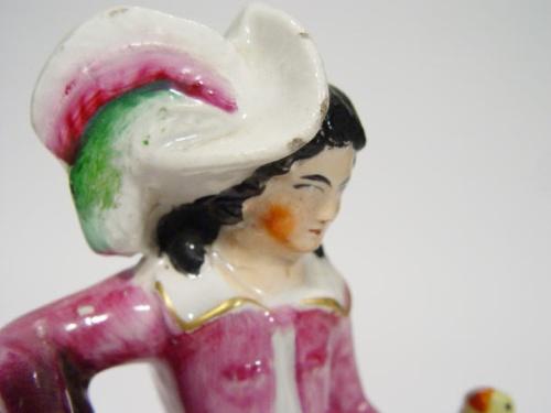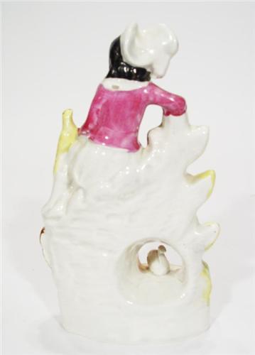 Hand painted Staffordshire figure group , a gentleman on a bridge with birds and dog, 22cm high