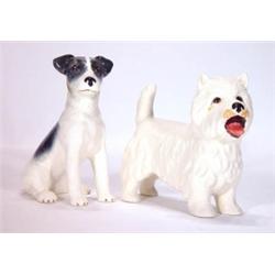 Hand painted Sylvac Scottie dog and a seated terrier, marks to bases, largest 16cm high