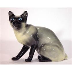 Hand painted Sylvac seated Siamese cat, impressed marks to base, 20cm high