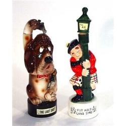 Hand painted 'The Last Shot' musical decanter and 'Auld Lang Syne' musical decanter, largest 35cm…