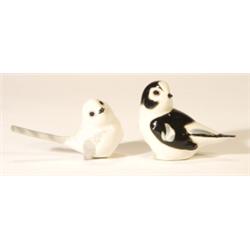 Hand painted USSR long tailed tit and a snow bunting, largest 8cm high