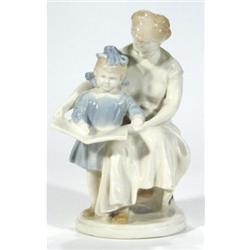Hand painted USSR mother and child reading, marks to base, 23cm high
