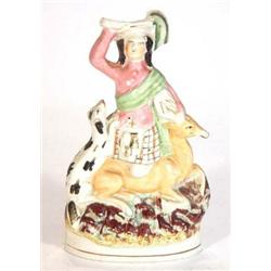 Hand painted Victorian Staffordshire figure of a Scottish man on a deer with a dog, 20cm high…