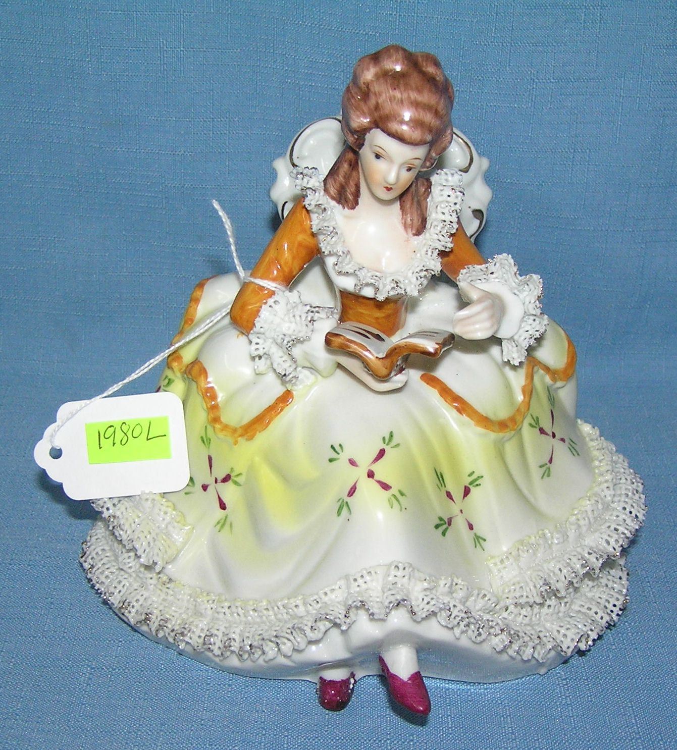 Hand painted Victorian style figure of a woman seated in a chair reading circa 1950's est. value $125.00-$150.00