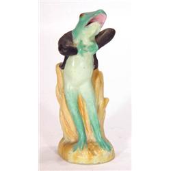 Hand painted bisque singing frog in a dinner jacket, 12cm high