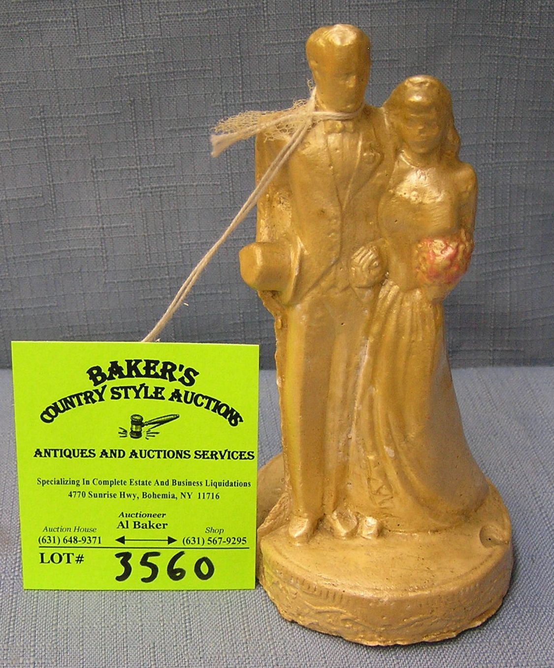 Hand painted chalkware bride and groom figure est. value $45.00-$50.00