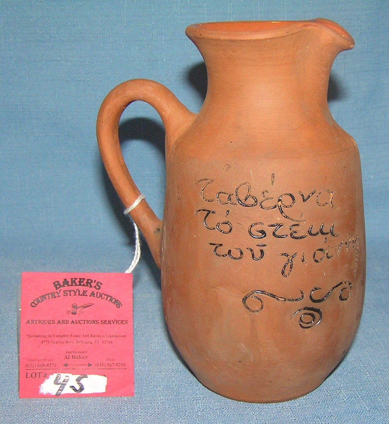 Hand painted earthenware pitcher est. value $50.00-$60.00