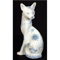 Hand painted floral David Sharp seated cat, various marks to base, 40cm high…