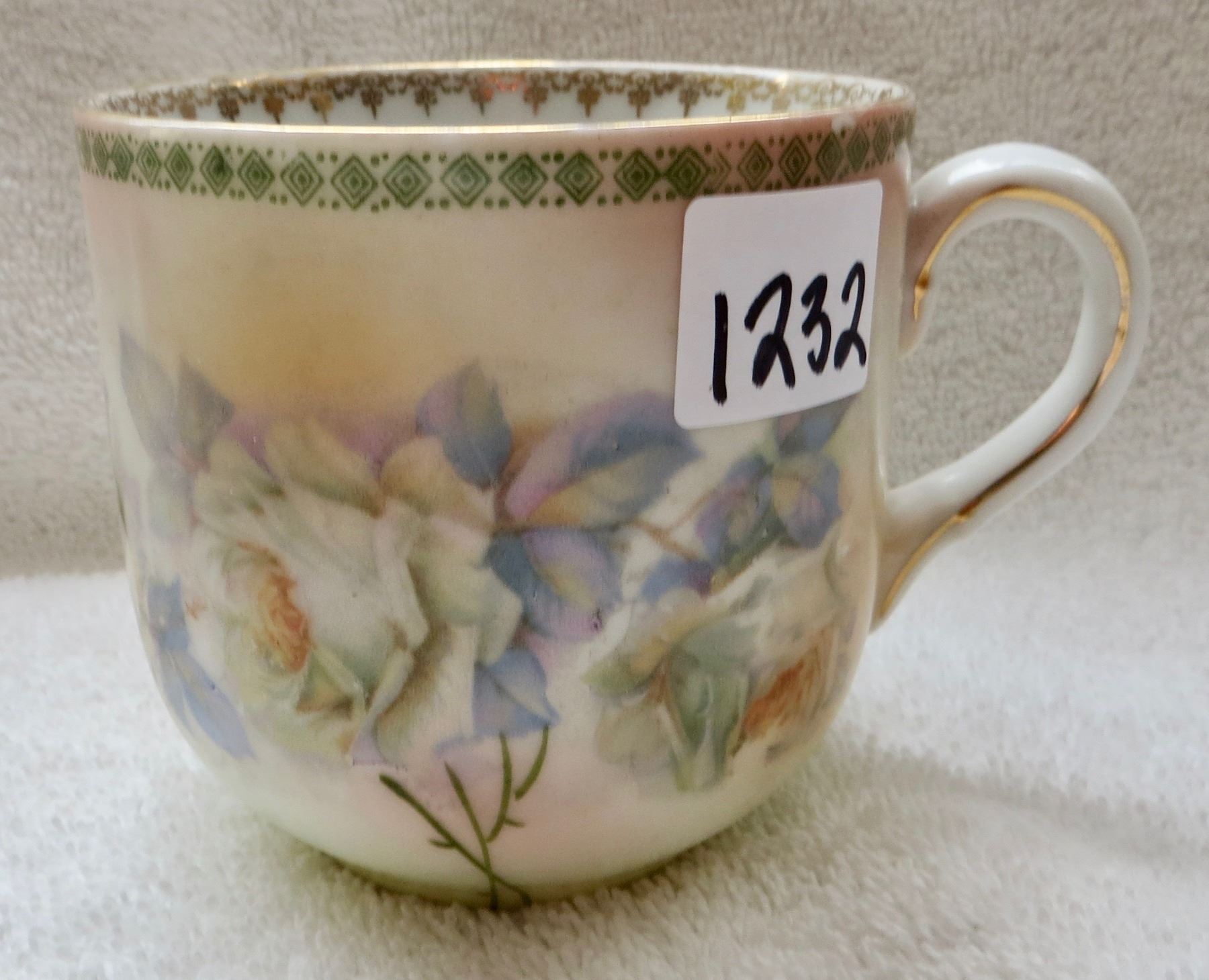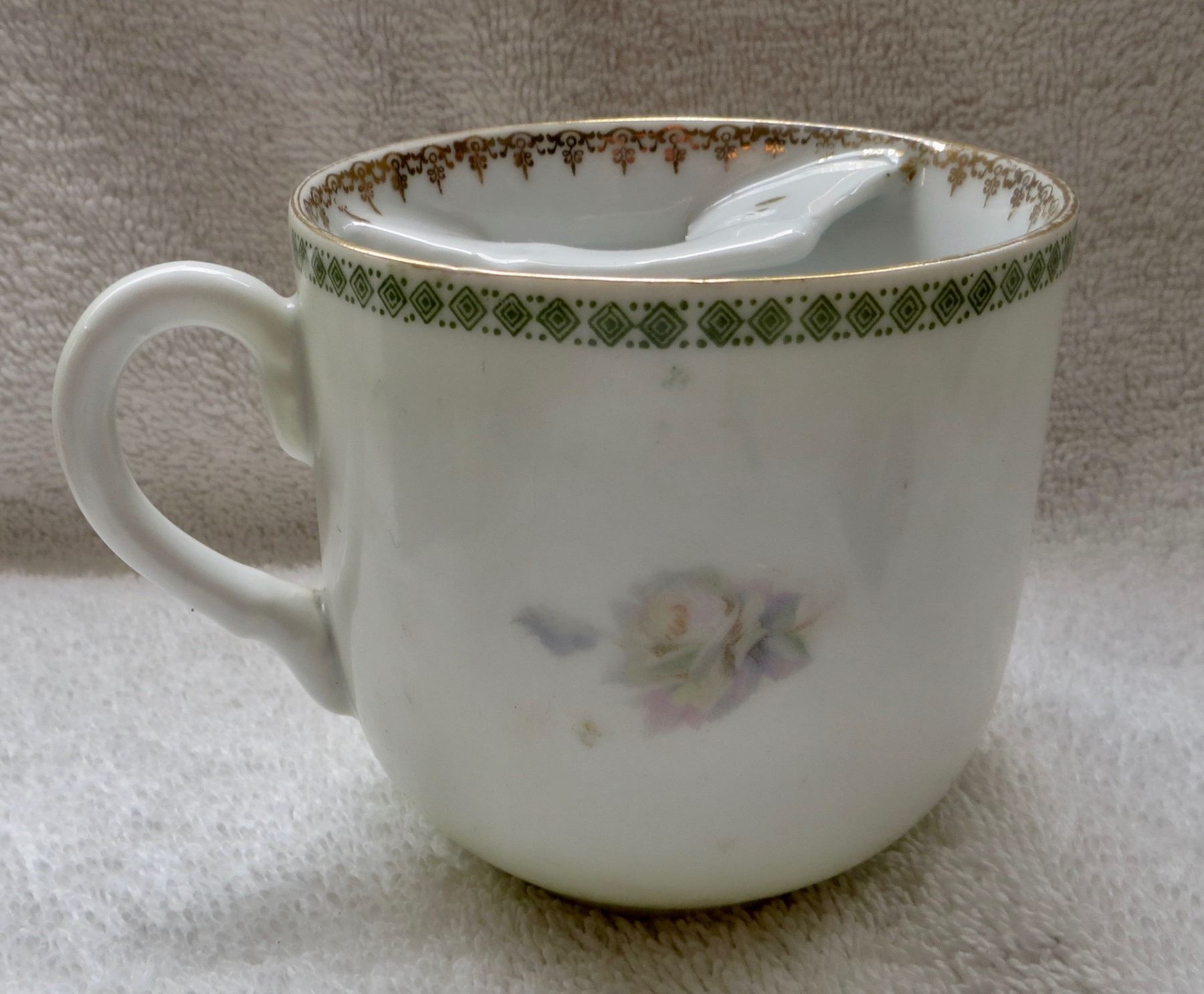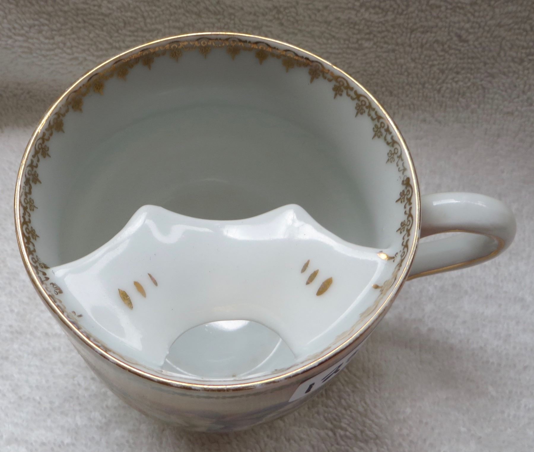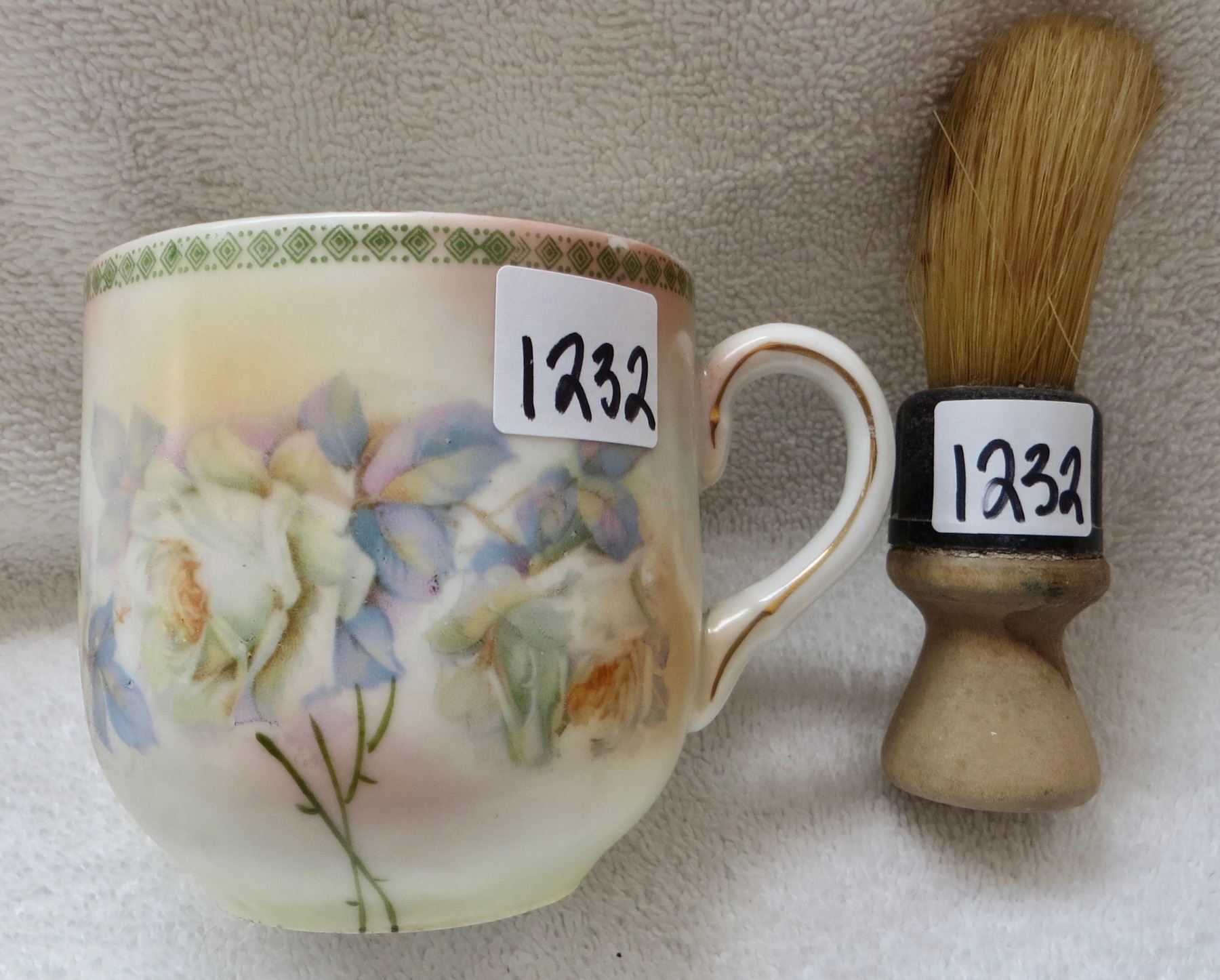 Hand painted moustache cup, Germany, with shaving brush