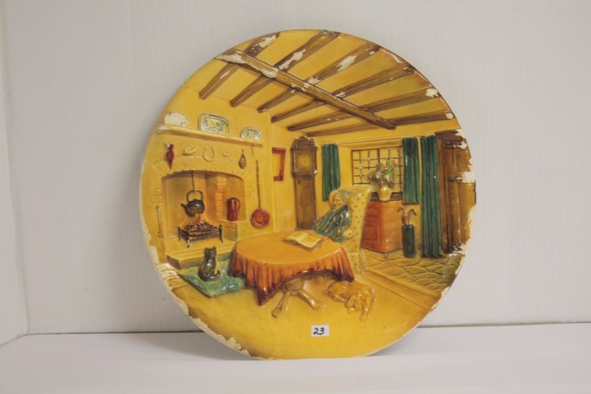 This is a beautiful hand painted plaque, the setting is a mans home.