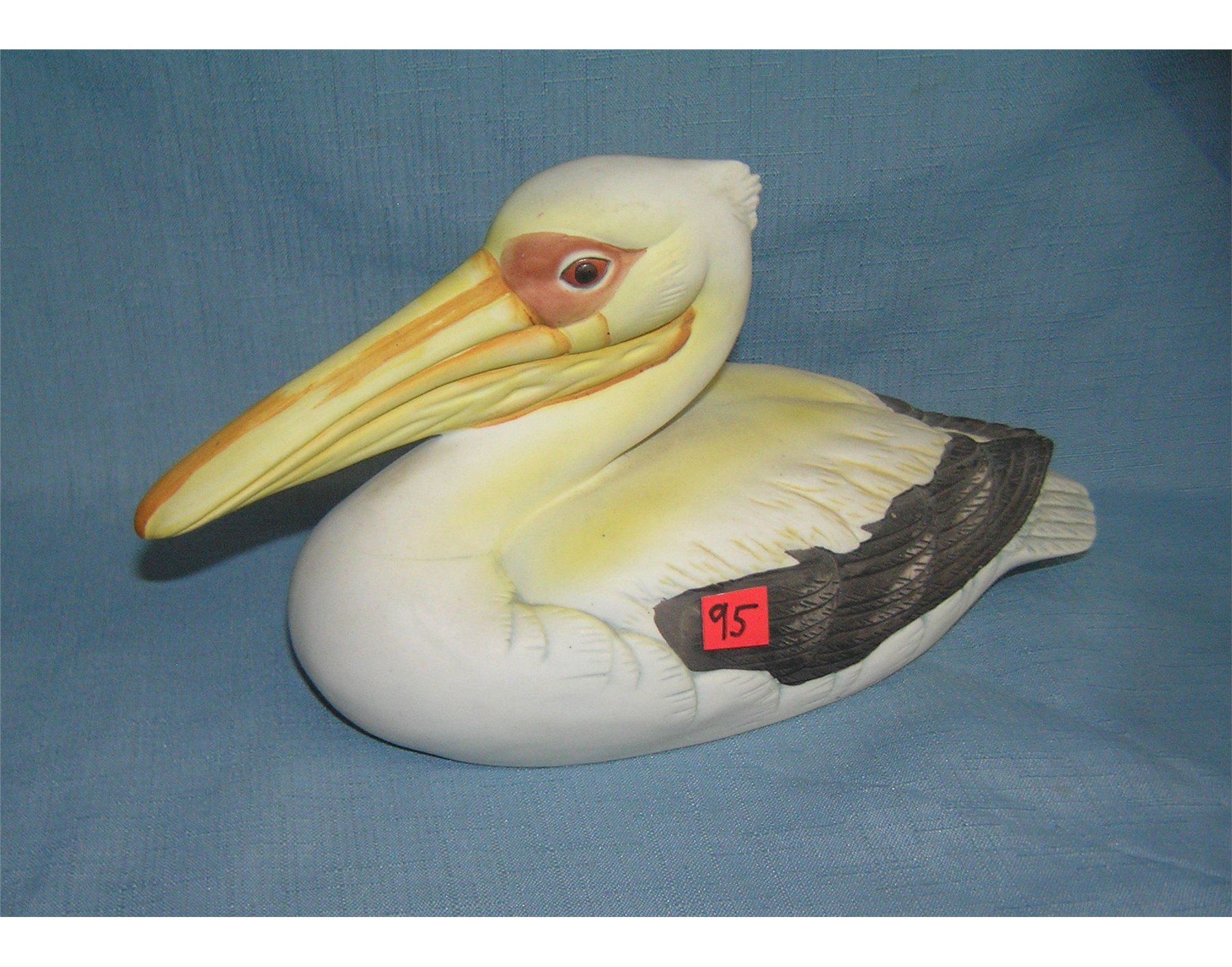 Hand painted porcelain pelican artist signed by Royal Crown 4 1/2 inches wide by 11 inches long by 6 inches high est. value $30.00-$40.00