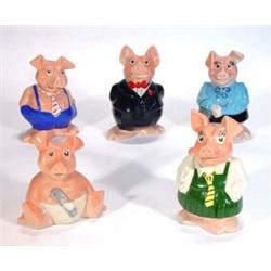 Hand painted set of five Wade Nat West pig moneybanks, marks to base