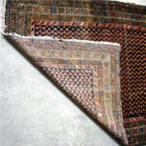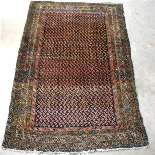 Hand tied Oriental rug; geometric design on navy ground with border; 51"x 78"; early to mid 20th C.; a few small areas of loss on edges