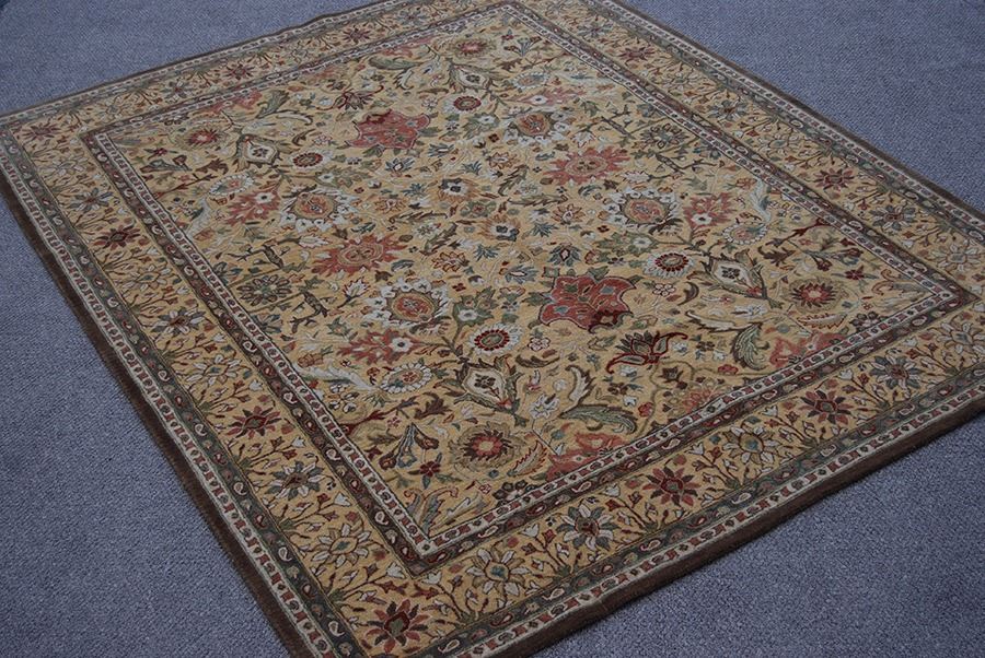 Hand woven, Indian wool pile on cotton foundation Rug. Country of Origin: India. Size: 7.6X9.6