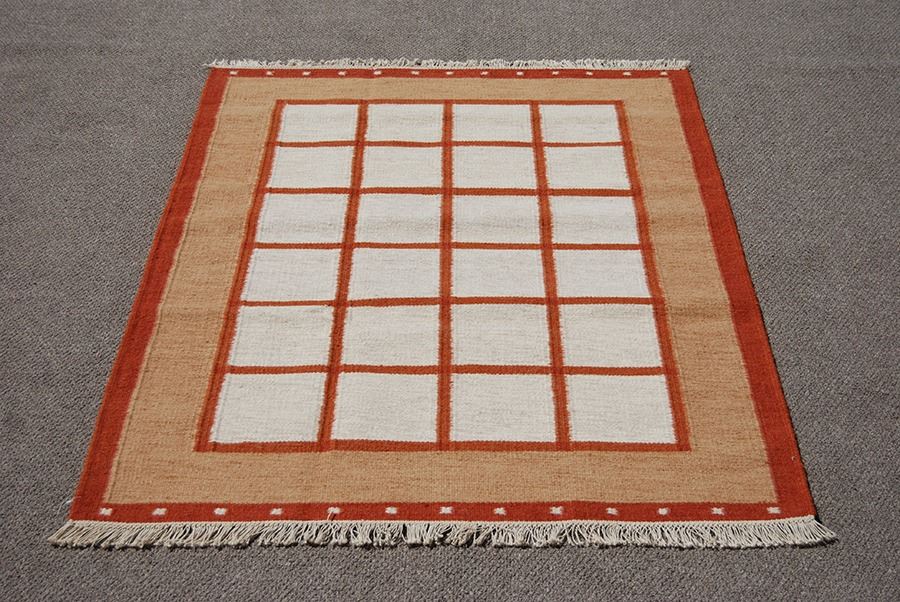 Hand woven, Indian wool pile on cotton foundation Rug. Country of Origin: India. Size: 4.6X6.6