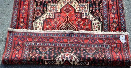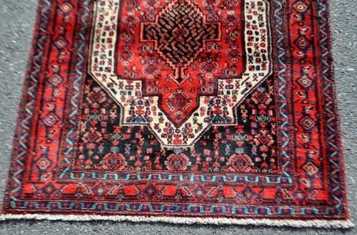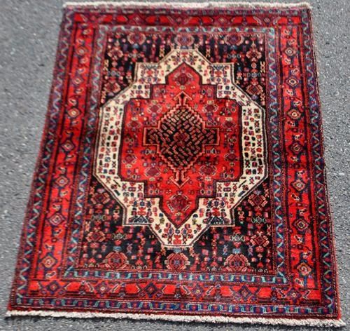 Hand woven mesmerizing design Persian Senneh. Made of fine quality lamb's wool pile on cotton foundation, all natural vegetable dye. This Rug has a very interesting design, in that it captivates you with its design pattern. Hand woven in Senneh, Iran. Size 5 feet 1 inch X 3 feet 8 inches.
