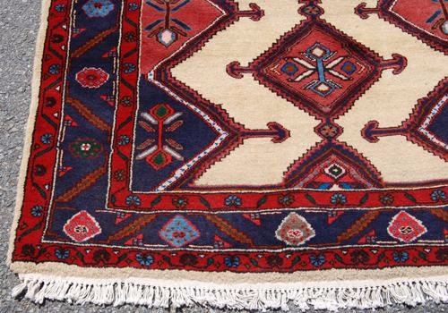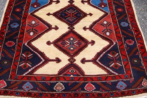 Hand woven unique design Persian Koliyaee Rug. Made of fine quality lamb's wool pile on cotton foundation, all natural vegetable dye, utilizing a simplistic yet lovely design with a nice combination of colors. Hand woven in Iran. Koliyaee Rug is categorized in Kurdish Rugs category and very similar to Bidjar Rugs in durability yet different in design. These tribal geometrical Rugs are not only 100 percent hypoallergenic but soft and very stain resistible. Size: 6 feet 8 inches X 4 feet 4 inches.