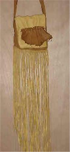 This Bag is made of buttery soft deer hide. Has a shoulder strap, adjustable. Bag is 9 in x 7 in x 2 in. Overall length of bag and fringe is 45" Fringe can be trimmed.