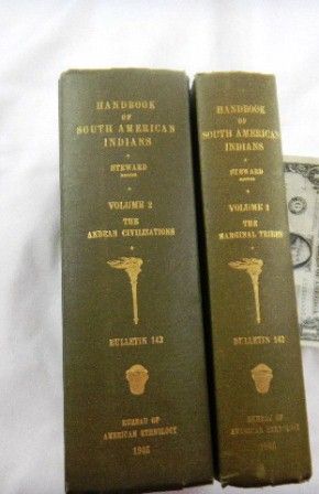 Handbooks Smithsonian Institute 1946, Volume I and II, Handbook of South American Indians. Published in 1946, Shipping $20.00 Condition is very good
