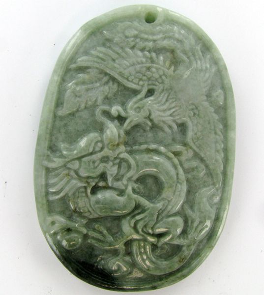 Handcarved Burma Translucent Green Jade Dragon Pendant (ANT-002248)