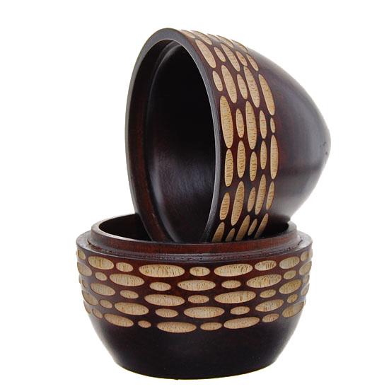 Excellent handcarved piece rare mango wood egg shaped box; 5"