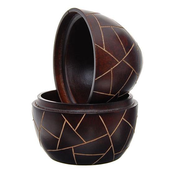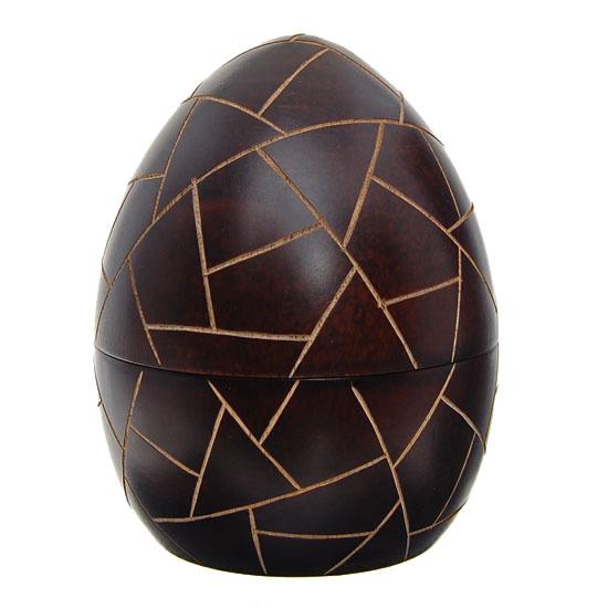 Excellent handcarved piece rare mango wood egg shaped box; 5"