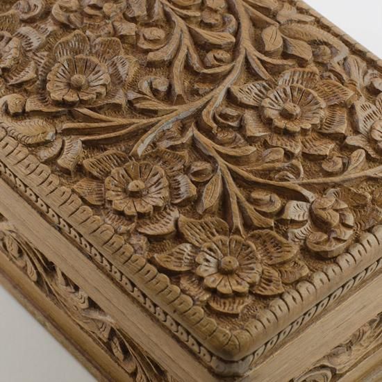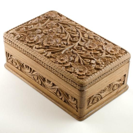 Handcarved Walnut Jewelry Box, Dimensions: 8in (L) X 5in (W) 3in (H)