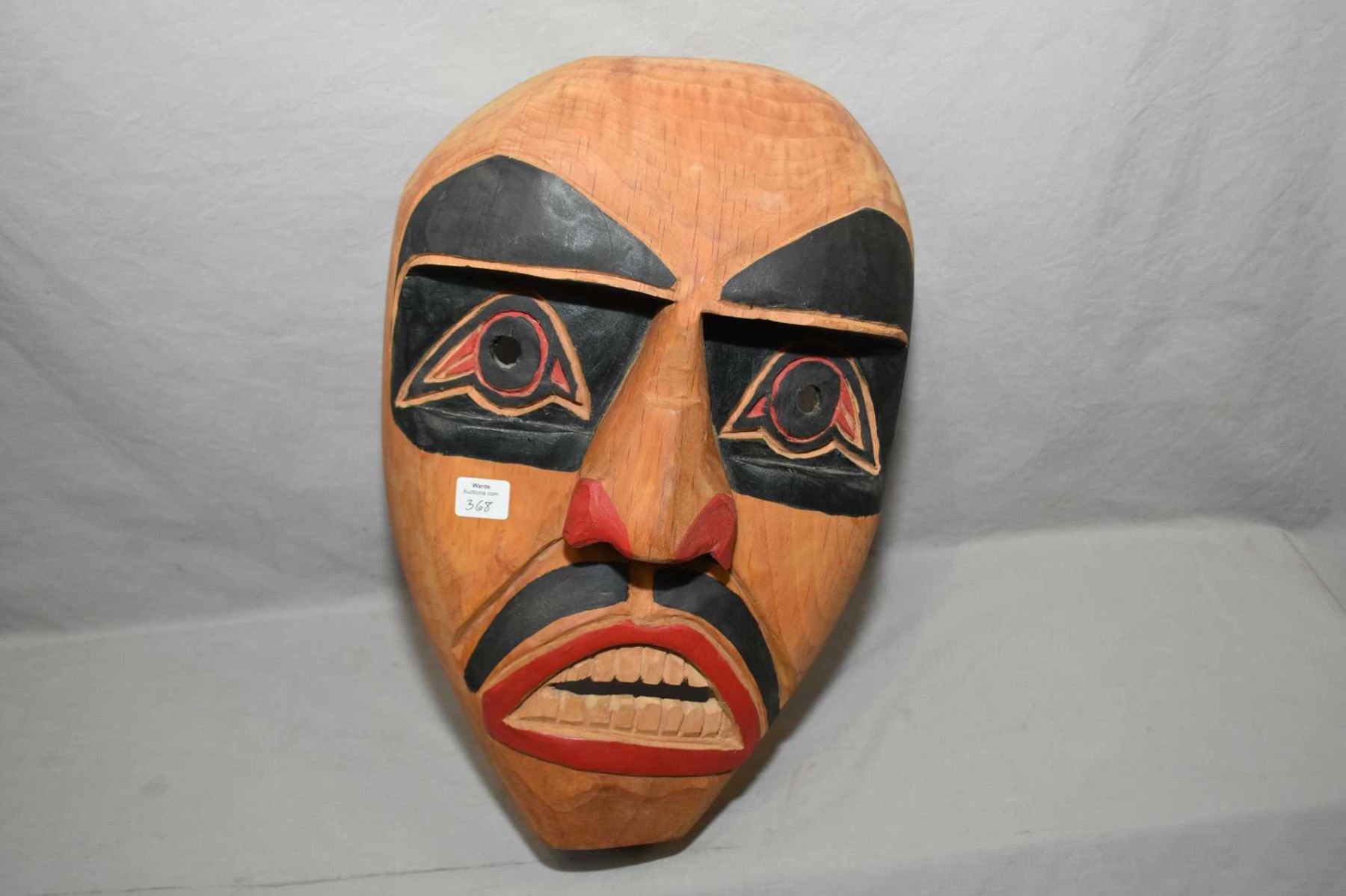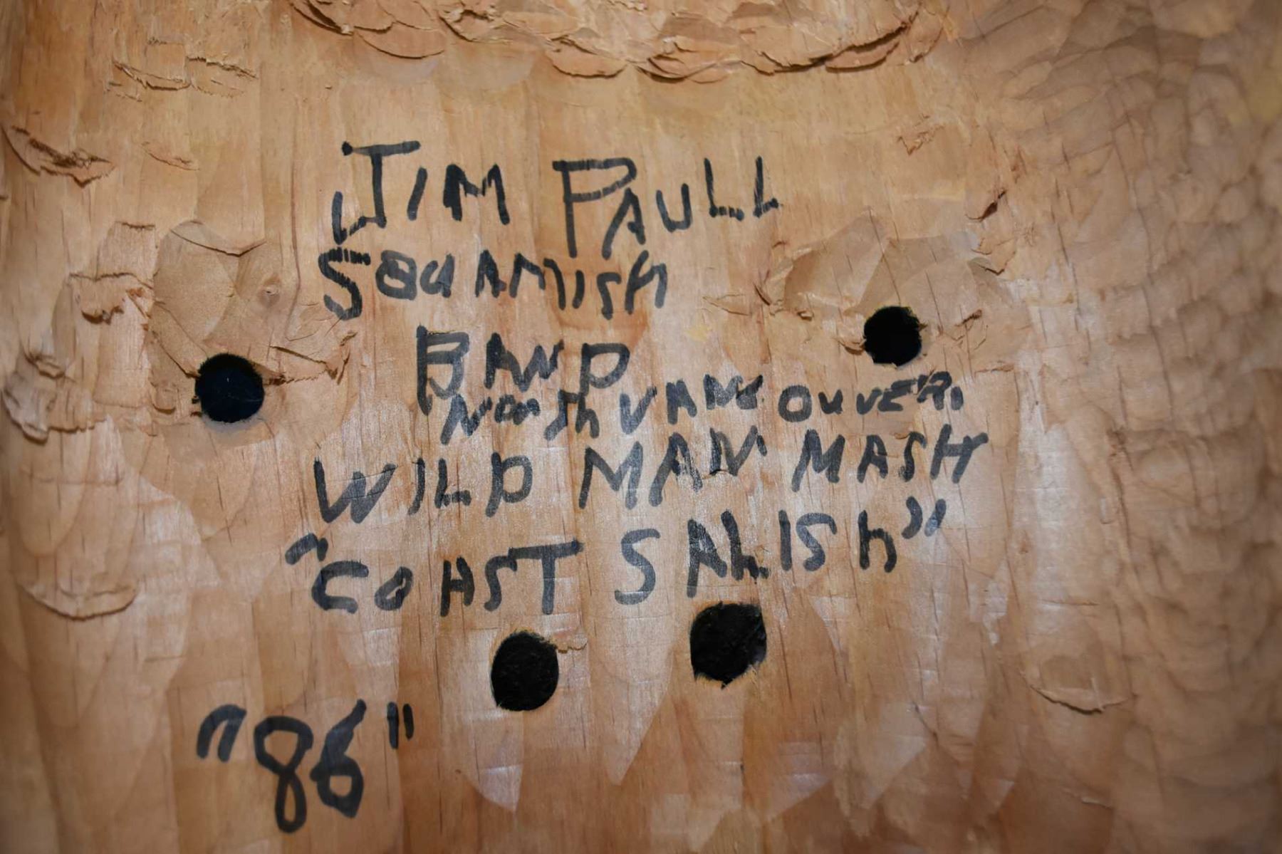 Handcarved west coast Haida mask marked on verso Jim Paull Squamish Band, North Vancouver "Wild Man Mask, Coast Salish'86", 16" in height