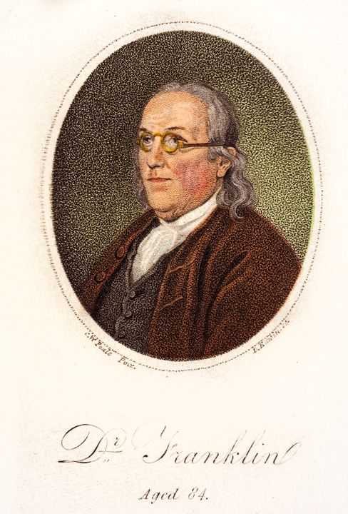 Handcolored Print: Dr. Benjamin Franklin, Aged 84