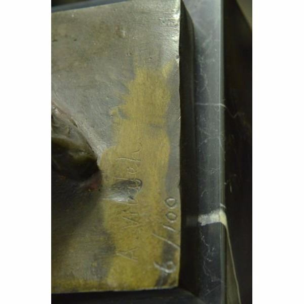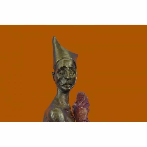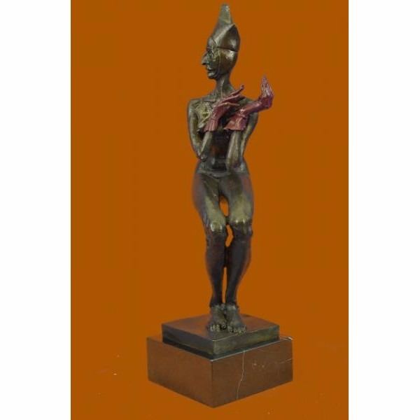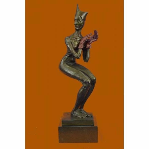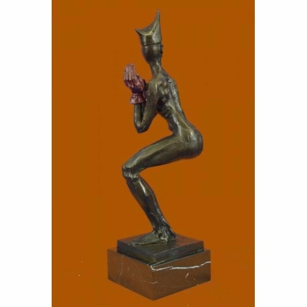 She Is A Jester And she is completely naked. She Wears A Long Sleeved Fitted Shirt Her Face Is Sweet And Smiling Wide As She Dances Around. This Is A Beautiful Piece And Captures A Jester In Their True Element. This Bronze Sculpture Is 100% Bronze And Handmade. It Has A Soft Brown Patina And Is Mounted On A Beveled Marble Base. This Limited Edition Sculpture Was Cast Using The "Lost Wax Method" Which Ensures The Quality Of Detail And Craftsmanship, This Piece Is Signed and numbered by the artist Aldo Vitaleh. Condition: This sculpture is in perfect condition. Bronze Dimensions with Marble Base:Height 16" X Width 5" Marble Dimensions: 5" X 5" Height without base: 14" Weight : 10 LBS Inventory:60XNCH6316206