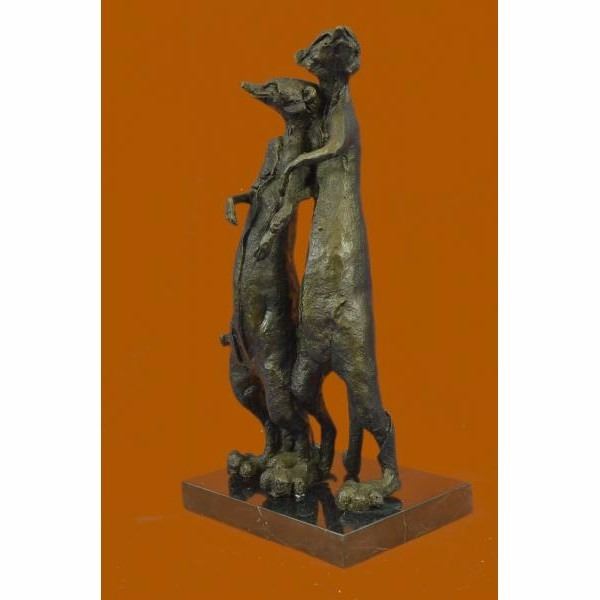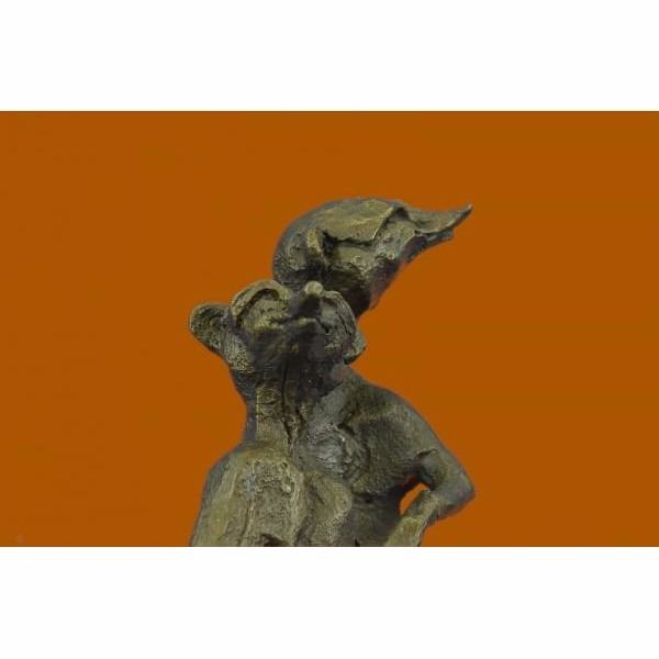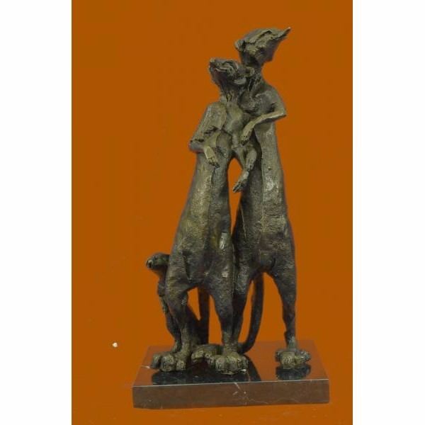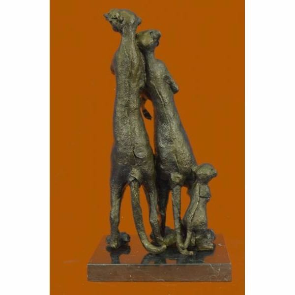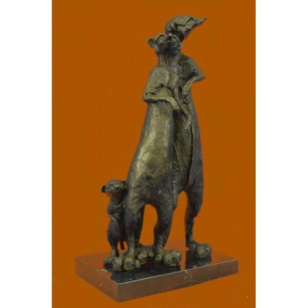 Well modeled genuine hot cast large bronze sculpture depicting a Meerkatfamily with a baby Meerkat holding her mom leg. The sculpture was cast using the early method of lost-wax casting and stained with a brown patina finish for preservation. It is mounted upon a black marble base. and it has European Finery Seal. Condition : This sculpture is in perfect condition. Bronze Dimensions with Marble Base:Height 16" x Width 8" Marble Dimensions:8" X 6" Height without base: 15" Weight : 18 LBS Inventory 69XN20247696