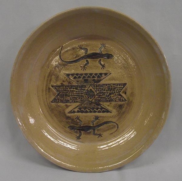 Handcrafted Lizard Baking Dish, measures approx. 2''H x 10.5'' diameter. Signed on the back ''Lewis''. Buyers Pay Actual Shipping and Handling Charges(see terms and conditions for more information).