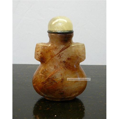 </font></strong>This is a high quality hand-crafted natural crystal snuff bottle. There is a great amount of natural material hairs mixed in the crystal. The inside of the bottle is dug empty. It is not an easy task to do the carving on crystal. This piece has the effort of the craftsman and the natural beauty of the nature. It is a nice gift for collectors or friends with meaningful blessing.