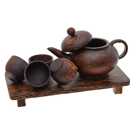 Excellent large handcrafted set; 4 cups pot & tray; 10"